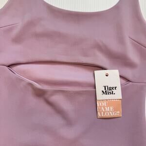 NWT Tiger Mist lilac bodycon mini dress with scoop neckline, thick straps, under-bust cutout detail, double-lined stretch fabric, fitted silhouette, and Y2K clubwear spring vibes (fits like XS/S).