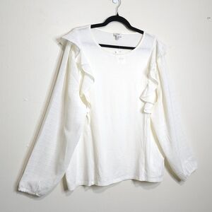 J.Crew Ruffle-Shoulder Top NWT 2X Ivory Plaid Jacquard Bubble Sleeves Holiday