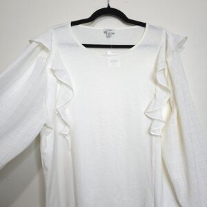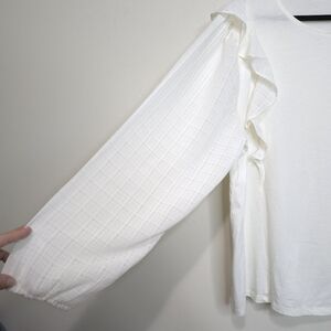 NWT J.Crew Ruffle-Shoulder Top NWT 2X Ivory Plaid Jacquard Bubble Sleeves