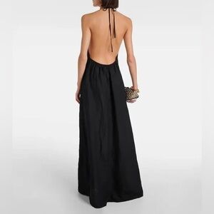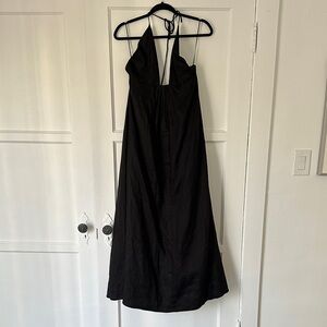 Chic black linen maxi dress with halter neckline. Flowy and stylish. Ideal for any event. Perfect for a summer wedding.