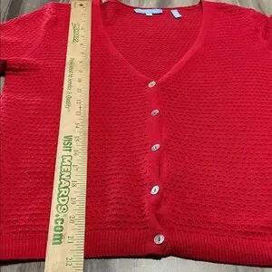Stay cozy and stylish with this vibrant red V-neck sweater. Perfect for layering or wearing on its own, this button-up design adds a pop of color to any outfit.