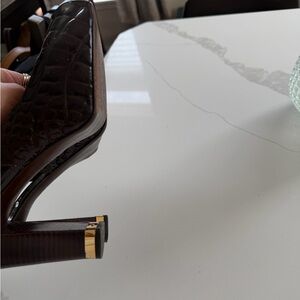 Step out in style with these elegant brown slingback heels. Featuring a chic crocodile pattern, these shoes are perfect for any occasion.