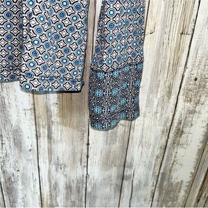Elevate your wardrobe with this stylish blue patterned top from Talbots. Perfect for any occasion, this top offers both comfort and elegance.
