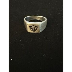This 925 Sterling Silver Vintage Dark Tone CTR Wide Band Ring in size 9.5 is a stunning piece of fine jewelry for women. With its retro design from the 1935-1950 era, this antique ring is signed and features a wide band of sterling silver. The absence of a main stone adds a touch of elegance to this original piece, making it a unique and stylish addition to any jewelry collection.