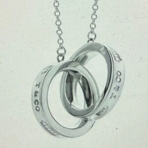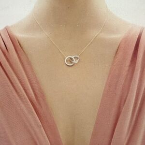 Beautiful necklace with interlocking silver loops. Ideal for any occasion. Great condition. Comes with darling Tiffany blue pouch bag. 100% authentic.
