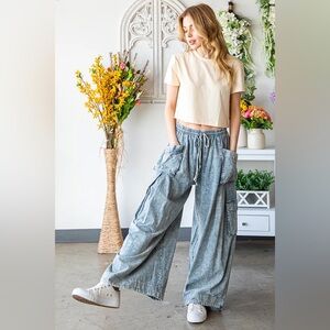 Stylish wide-leg pants. Light blue color. Comfortable fit. Perfect for casual wear.