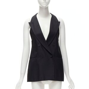 STELLA MCCARTNEY 100% silk black double breasted halter neck tux top IT36 XXS