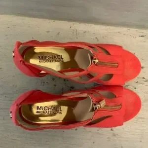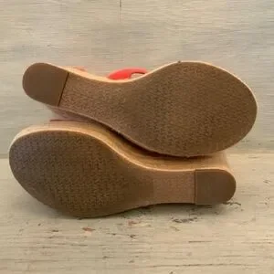 Michael Michael Kors Coral Canvas Espadrille Wedge Sandals Size 7 Good Condition