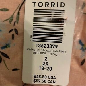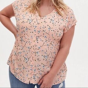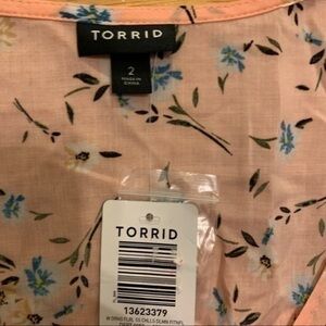 NWT Torrid size 2 peach floral button front fit and flare blouse in excellent condition