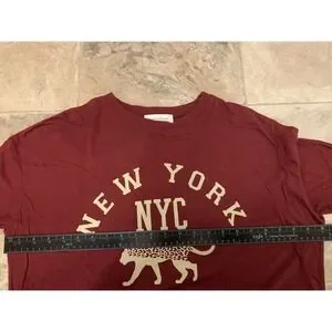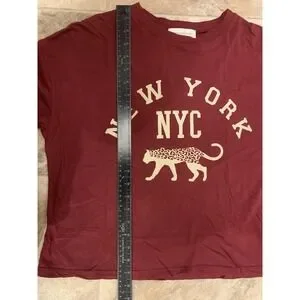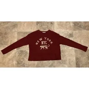 This is a women's red New York themed long sleeve shirt by Treasure & Bond in size XS. On some women this may be more of a crop top/shorter length based on the length of the shirt.