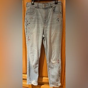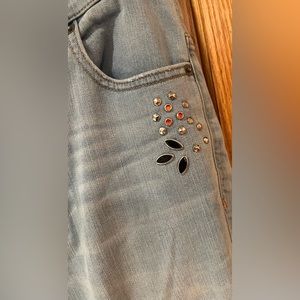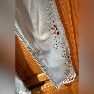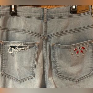 I’m selling Express Super High Waisted Embellished Ripped Ankle Leggings Jeans Size 2 Short for $15.