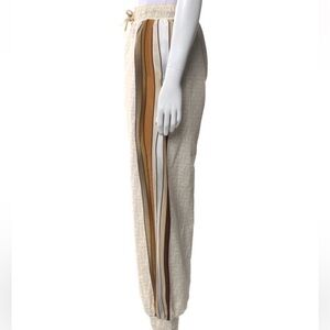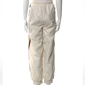 Stylish Fendi joggers with a beige monogram design. Features brown side accents for added flair.