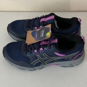 Stylish Asics athletic shoes for women w/Ortholite foam insoles Dark blue with purple highlights. Ideal for active wear.