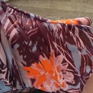 Flaws: small holes in a few spots, small strings poking out of fabric. See last two photos. Price reflects flaws!