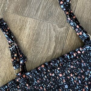 Smock dress Chic casual dress with mini floral print design. Features a ruffled hem and comfortable straps.
