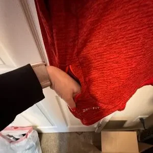 Bold red heathered performance fabric with reflective details and classic Nike swoosh. Lightweight but warm — perfect for layering at the gym, morning runs, golf, or just throwing on with joggers for that effortless athletic look.