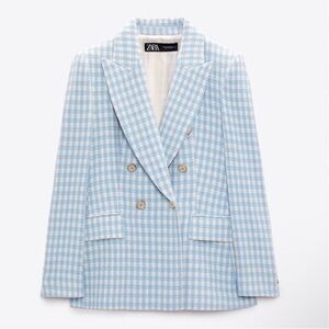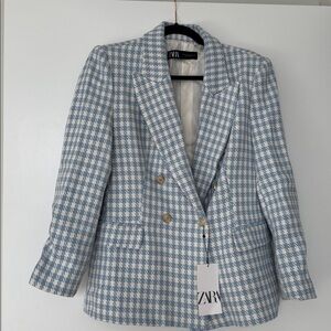 BNWT ZARA blue houndstooth double breasted blazer. XL