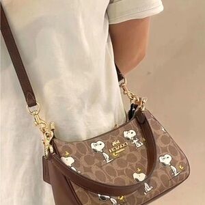 Coach X Peanuts Teri Shoulder Bag In Signature Canvas With Snoopy Print