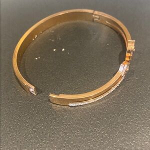 This elegant women's bracelet features a stunning combination of rose gold and crystal. perfect for any occasion. Its sleek design adds a touch of sophistication to your jewelry collection.please video