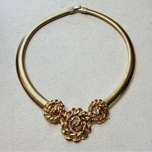 Vintage Chain Link Pendant Gold Tone Flexible Omega Tubogas Choker Necklace