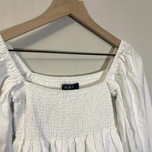 o.p.t. Athena White Smocked Off The Shoulder Puff Sleeve Midi Dress Sz XL