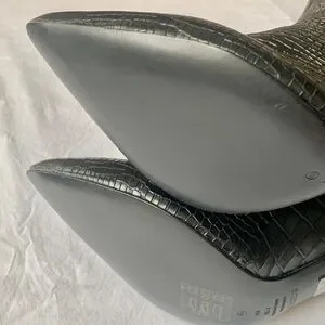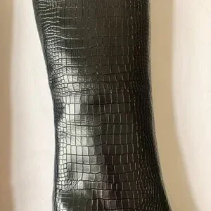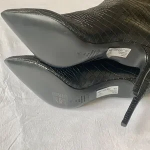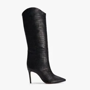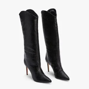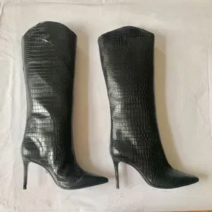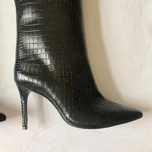 Schutz Maryana High Heel Leather Crocodile-Embossed Boot Black 7.5