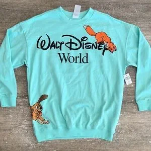 NWT Walt Disney World fox and the Hound graphic teal crewneck sweatshirt. Brand new, size medium.