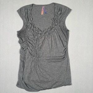 Anthropologie Ruched Sleeveless Blouse Women’s Medium Gray Bohemian Top