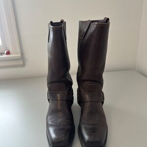Frye Women's Vintage Harness 12R Boots in Brown Oiled Leather | Size 6