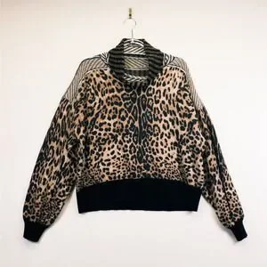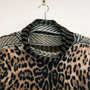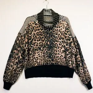 Gimmicks Sweater Womens L Brown Boho Leopard Animal Print Cozy Retro Chic Luxe