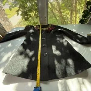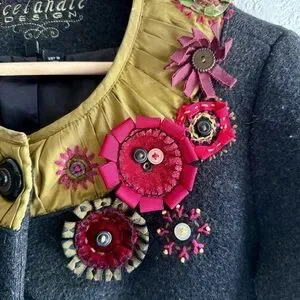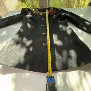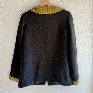 Icelandic Design Green Silk Appliqué Embroidered Lined Wool Jacket Women’s Sm