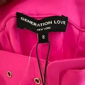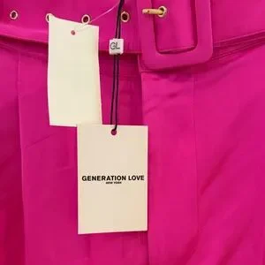 Chic wide leg pants Eloise Satin Pants in hot pink. Features a stylish belt. Perfect for a modern look.