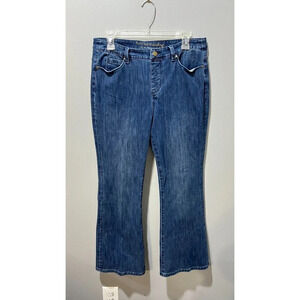 Soft Surroundings Womens Blue Distressed Denim Lean Flare Jeans Medium Mid Rise