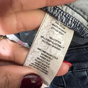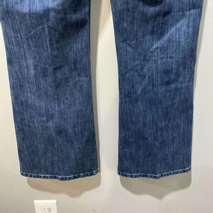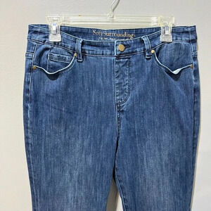 Soft Surroundings Womens Blue Distressed Denim Lean Flare Jeans M 33x29 Mid Ris
