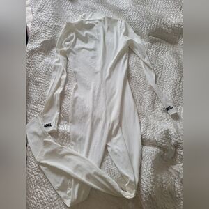 Super clean minimalist vibe. Perfect for airport fits, winter layering, après ski aesthetic, or styled with sneakers and an oversized coat. Gives soft skims energy in a crisp white tone.