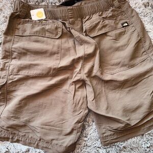 The North Face Greenish/Brown Cargo Adventure Shorts with an adjustable belt