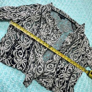 Too much fun managing to look both elegant and edgy at the same time a cream floral lace on a black mesh background is semi share the zip front and pockets. Add that Moto vibe. In excellent condition.