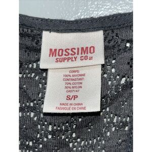 This is a stylish Mossimo Supply Co. sleeveless dress in a size Small. The dress features a fun polka dot pattern in gray with pink accents, a scoop neck, and a pullover closure. It is designed with a lightweight and comfortable blend of nylon, rayon, and cotton materials, making it perfect for travel or casual wear. Additionally, the dress has convenient pockets and a short length, ideal for the summer, fall, or spring seasons.