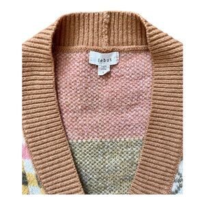 Debut Women’s Patchwork Gingham Smiley Cropped Cardigan - Size Large