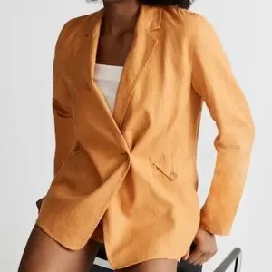 Madewell Double Breasted Relaxed Fit Lightweight Linen Blazer in Fresco, Size M