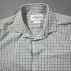 Mizzen+Main Leeward Collection Shirt XL Trim Fit Green Navy Check Performance