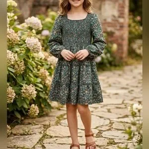 Charming floral dress in a lovely green hue, perfect for any occasion. Comfortable and stylish for your little one. Grace Karin Kids and Baby Children's wear. The inspiration comes from women's wear.