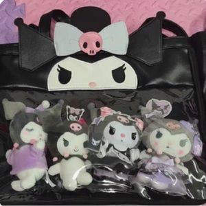 Stylish Hello Kitty tote bag. Features black and blue design. Perfect for everyday use.
