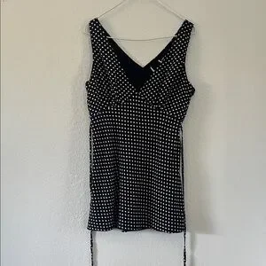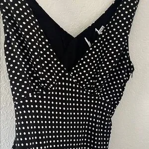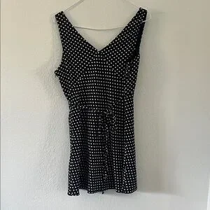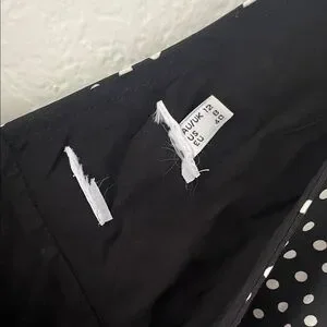 Mini dress with black and white polka dots. Marked size US 8 but runs on the shorter side. (I am 5’5” and it was a bit too short for me). Tags cut.