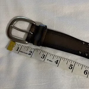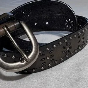 Enhance your style with this elegant vintage black leather belt featuring a chic silver buckle. Perfect for any occasion.