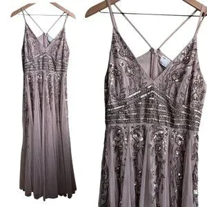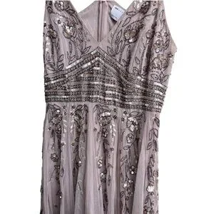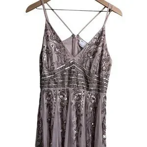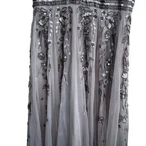 Embellished design with sequin detail and tulle overlay. Mink/Gray Color - Gorgeous!