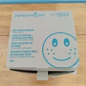 Pampered Chef Kid's Cookie Baking Set. Fun and engaging for young bakers. Emoji cookie cutters were opened but never used. From a non smoking, cat friendly home.