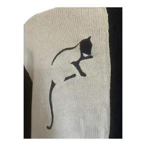 Christopher & Banks Navy and White Cat Sweater Size Large