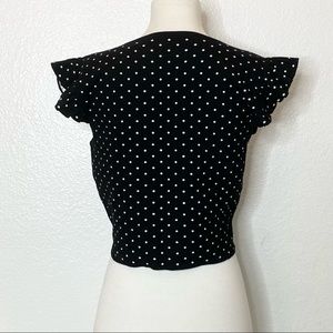 Black and White Reversible Polka Dot Ruffle Sleeve Top