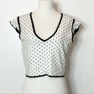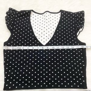 Black and white polka dot top. Ruffled sleeves. Reversible. See measurements. Size M/L.